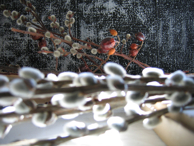 Herbarium Palmkätzchen Hagebutte/Herbarium catkin, rose-hip